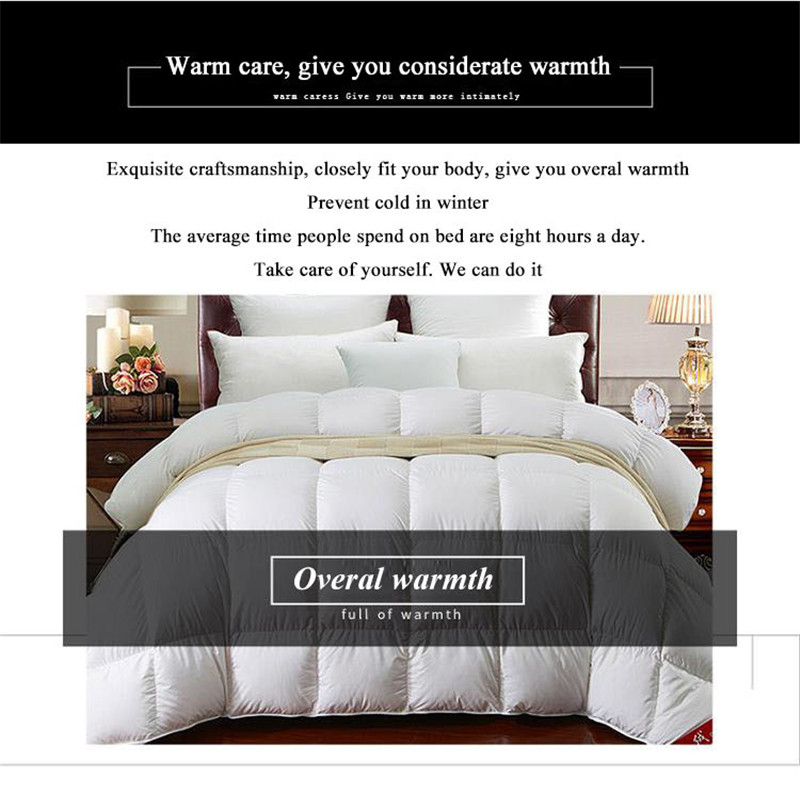 Superior Weight Super Soft Wrinkle Resistant Duvet Cover. Selected healthy and quality white duck down can increase the softness and comfort of quilt, enable it keep warm, dry and clean all the time so as to give you a good sleep.