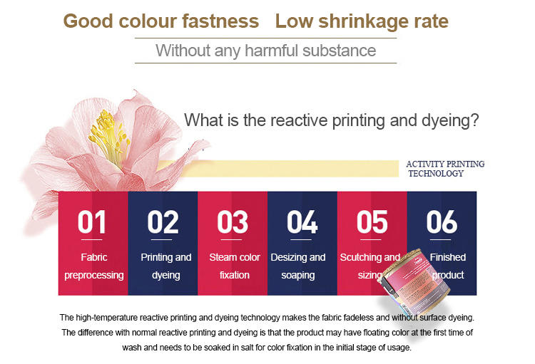 cleaning.Adopt the newest environment-friendly reactive printing and dyeing technology, which makes