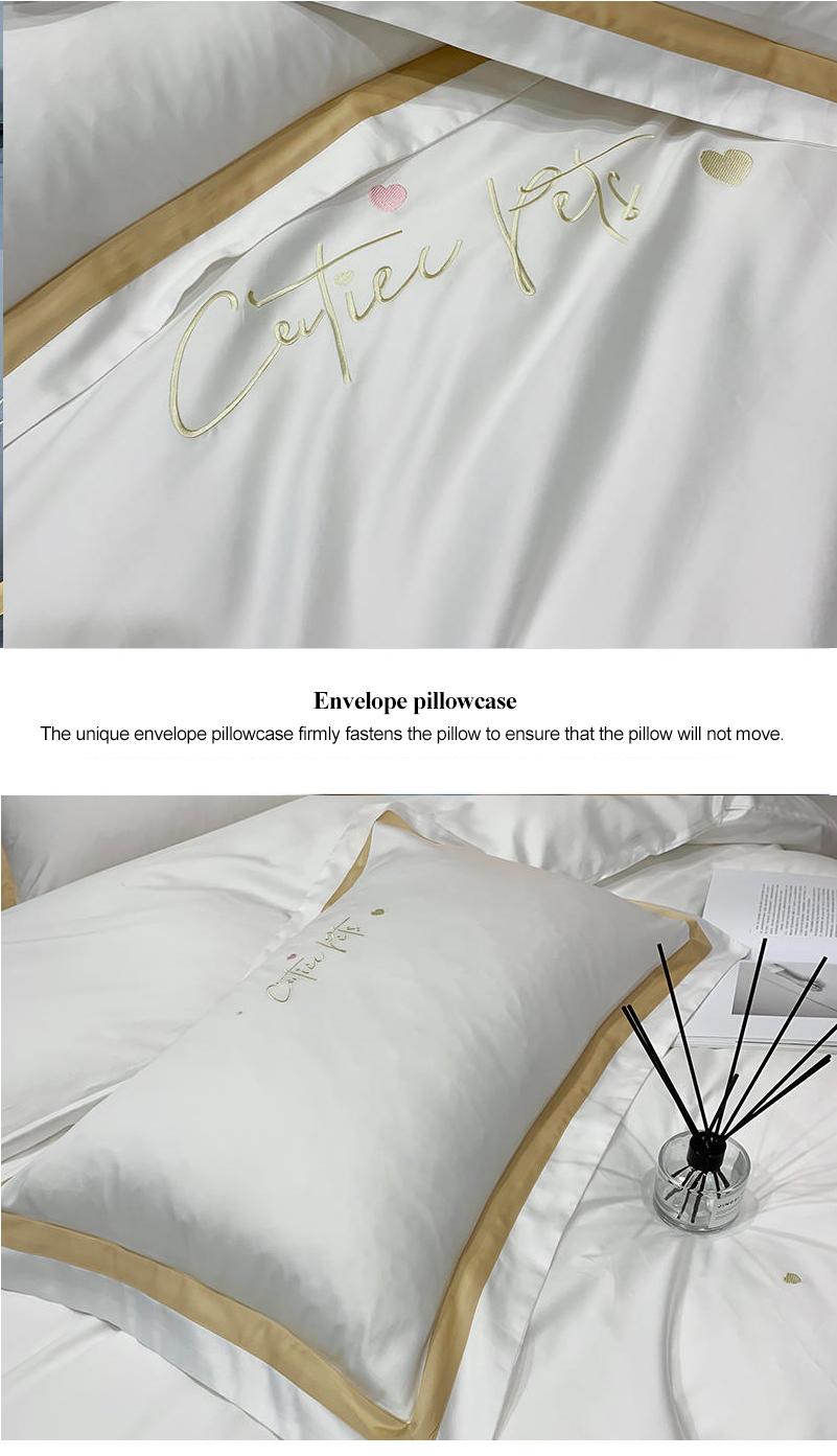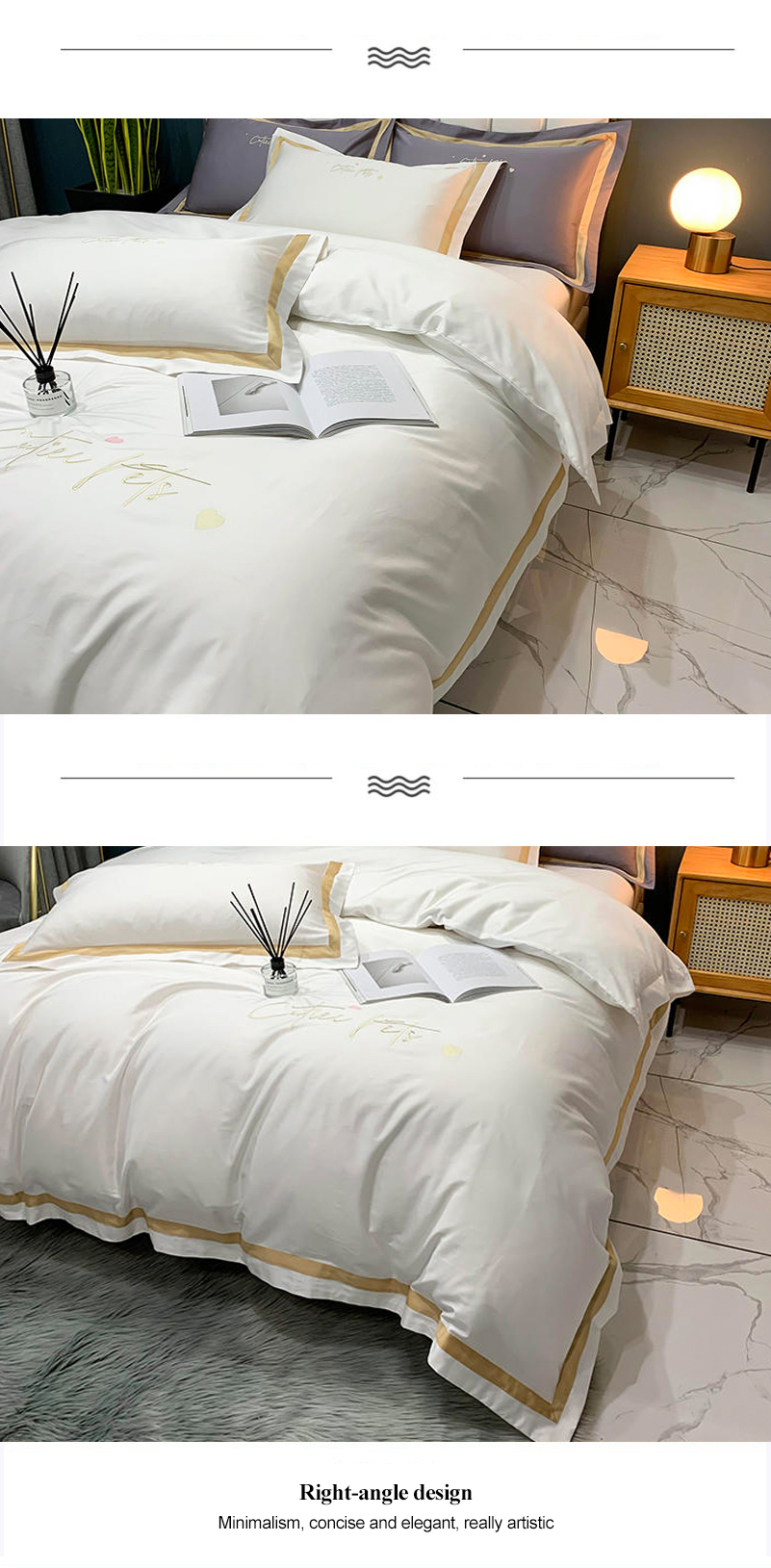 Deluxe Wedding Bedding Sleep Cool Pure Cotton Bedding Set White 4PCS