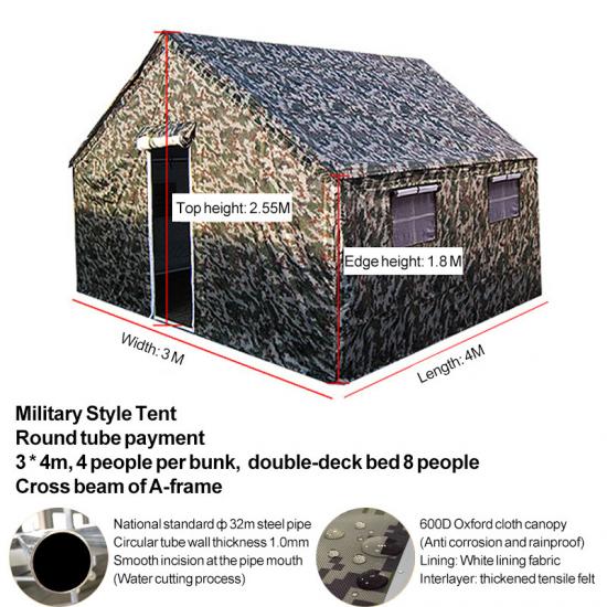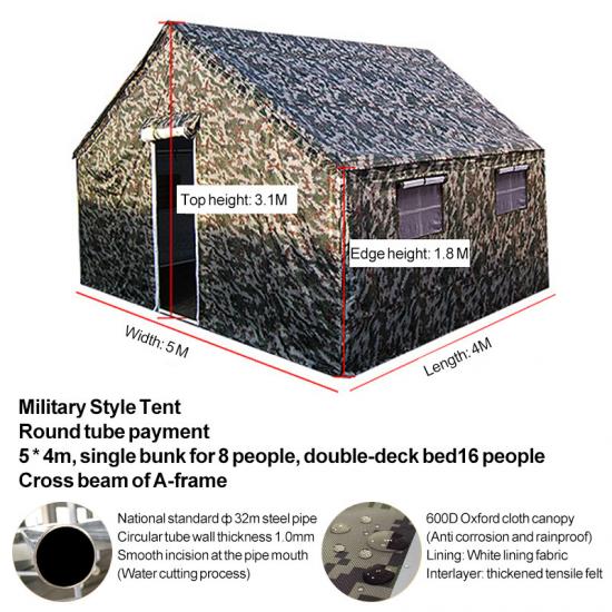 The main body is made of aluminum alloy, which has the advantages of light weight, high strength and corrosion resistance. It can maintain good structural stability under the erosion of sand and wind in the desert as well as in high-temperature environments. The outer layer of the tent is made of UV-resistant fabric, which can effectively block the damage of ultraviolet rays, prevent the personnel and supplies inside from being damaged due to long-term exposure to the sun, and also has good air permeability to ensure air circulation inside the tent and create a relatively comfortable environment.