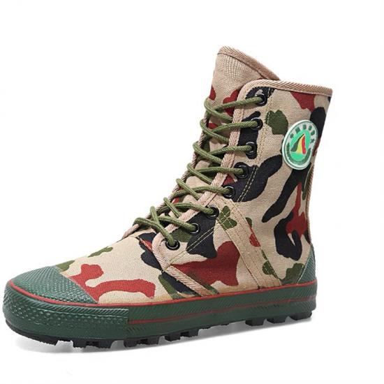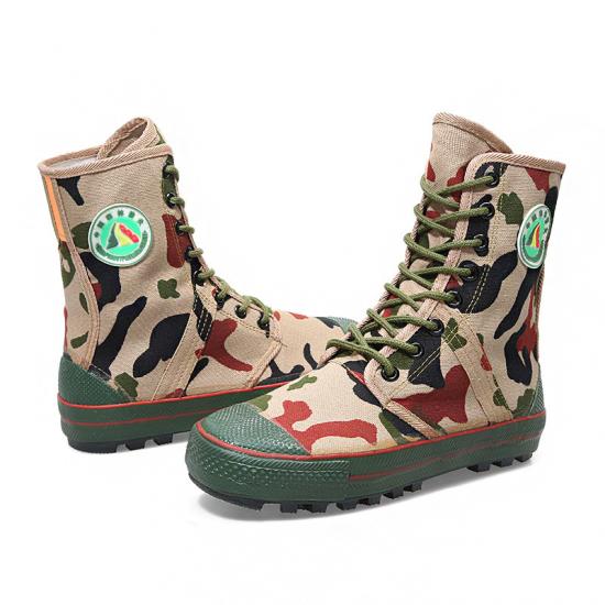 These Disaster Relief Camouflage High-top Boots are specifically designed for complex terrain rescue operations, featuring high-strength canvas material with anti-slip soles achieving a friction coefficient of 0.89, effectively handling muddy, rocky, and wet surfaces. The high-top design provides comprehensive ankle protection, while the camouflage appearance offers excellent visual integration in outdoor environments. Tested in over 200 actual rescue missions, these boots are a reliable choice for disaster relief personnel, suitable for extreme rescue environments such as earthquakes, mudslides, and forest fires.