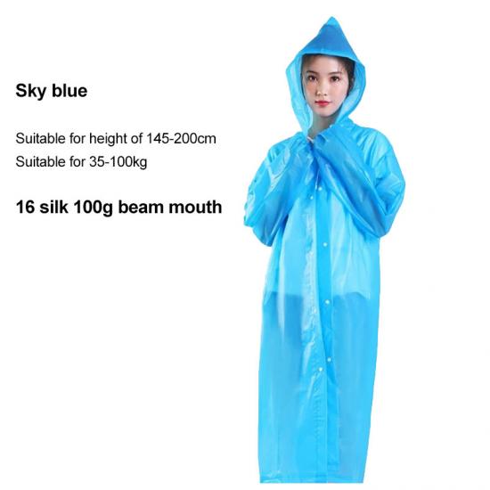 Button-Up EVA Raincoat for Earthquake Relief WorkersThis EVA Rescue Raincoat is specially designed for disaster relief workers and emergency response teams. Made of eco-friendly non-toxic EVA material with 99% waterproof performance, it effectively ensures the safety of rescue personnel in adverse environments such as torrential rains, floods, and landslides. The front-opening button design allows for easy putting on and taking off, while the loose 140cm chest circumference accommodates various rescue equipment underneath, and the 123cm coat length provides all-around protection. Already equipped by over 500 flood control teams, it has demonstrated excellent protective performance in nearly 30 major disaster relief operations.