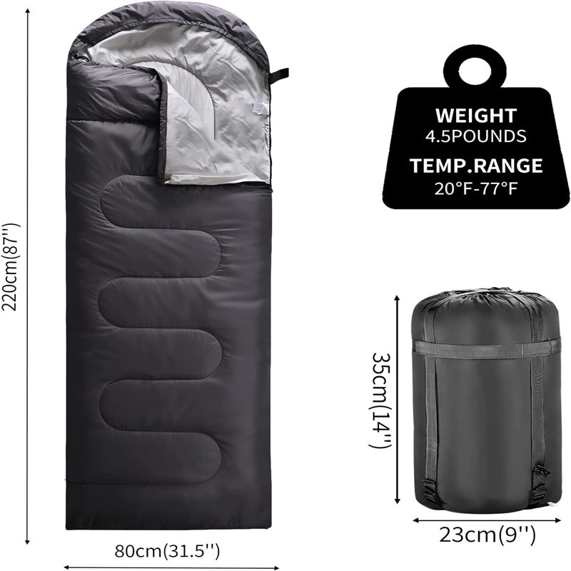 This soft, cozy, breathable fabric bounces back quickly, making the sleeping bag fluffier and warmer. The Emergency relief sleeping bag measures 31.5''*87" /220x85cm and the roomy rectangular design provides maximum comfort for a rated temperature range of 3-4 seasons.