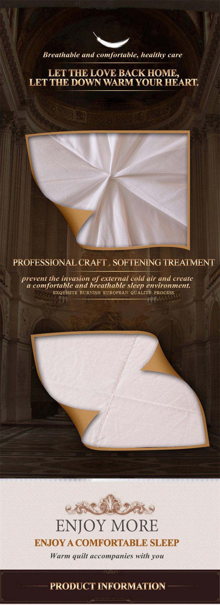Superior Weight Super Soft Wrinkle Resistant Duvet Cover. Selected healthy and quality white duck down can increase the softness and comfort of quilt, enable it keep warm, dry and clean all the time so as to give you a good sleep.