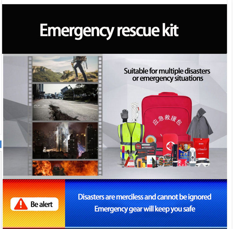 Outdoor Empty Pull Rod First Aid Kit emergency Multi-purpose waist axe Red Cross First Aid Kit BagThis emergency disaster tool pack is made of 800D waterproof Oxford fabric, achieving an IPX6 waterproof rating capable of resisting strong water flow impact. Measuring 47x17x32cm with a capacity of 47L, it is equipped with 119 disaster rescue tools and 5 first aid items, weighing a total of 1.2kg. The innovative quick-open design allows complete deployment within 3 seconds. The eye-catching red appearance complies with international rescue standards, equipped with reflective strips to enhance night visibility. Suitable for disaster rescue scenarios such as earthquakes, floods, and forest fires, it provides rescue personnel with a comprehensive tool solution, improving rescue efficiency by 65%, with a tool completeness rate of 95%, making it standard equipment for professional rescue teams.