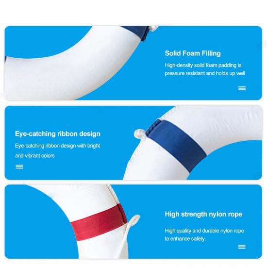 The life buoy features highly visible blue-white, orange-white, red-white alternating colors, easily identifiable in rapid floodwaters, turbid rivers, and complex water environments, greatly improving rescue success rates. The orange-yellow portable design maintains good visibility even at night or in low-light environments, making it an ideal choice for flood control and disaster relief operations. Equipped with reflective strips to further enhance visibility during night rescues.