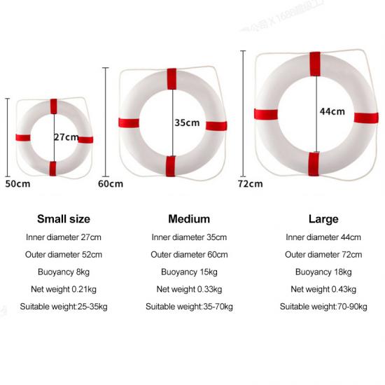 ● Small: Inner diameter 27cm, outer diameter 52cm, net weight 0.21kg, buoyancy 8kg, suitable for 25-35kg weight