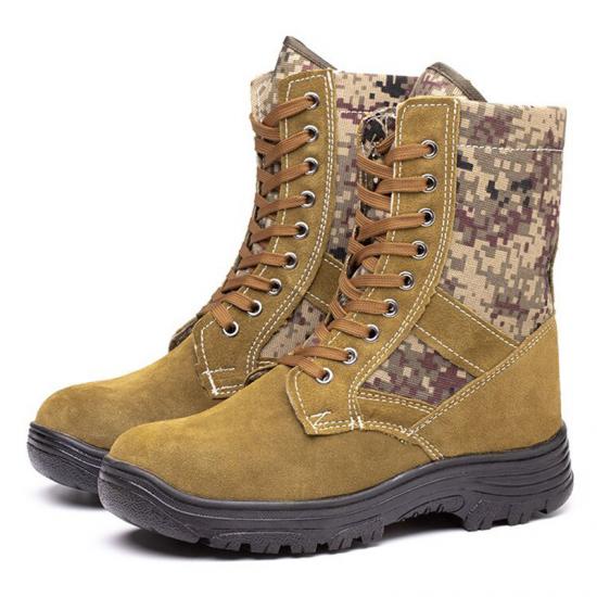 Fire-resistant rescue shoes feature anti-smash rubber outsole, specifically designed for firefighting rescue scenarios. The 23cm high-top structure provides comprehensive ankle protection, while the khaki appearance demonstrates professional rescue image. Made with advanced fire-resistant materials that maintain excellent protective performance in high-temperature fire environments. Anti-smash toe effectively resists impact from collapsed objects, providing reliable foot safety assurance for rescue personnel. Special rubber outsole offers heat and wear resistance, with 70% improved traction on wet surfaces, ensuring stable movement in various complex rescue environments. Puncture-resistant plate with 1180 newtons of penetration resistance prevents injuries from sharp objects. Providing comprehensive foot protection for firefighters and rescue team members, ensuring efficient and safe fire rescue operations.