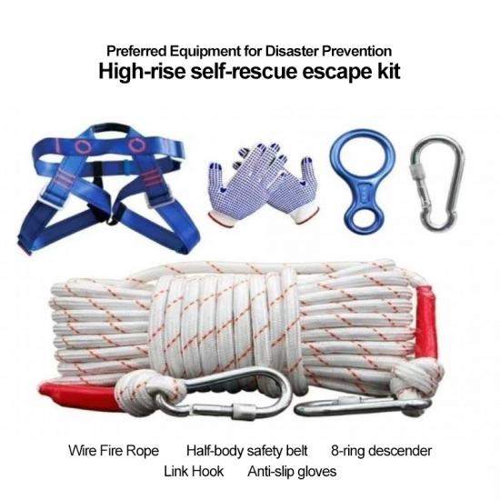 Professional 8-Piece Configuration: Includes 20-meter main rope, safety belt, professional descender, speed controller, anti-cutting gloves, escape whistle, fixed anchor point and portable storage bag, providing one-stop fire escape solution.