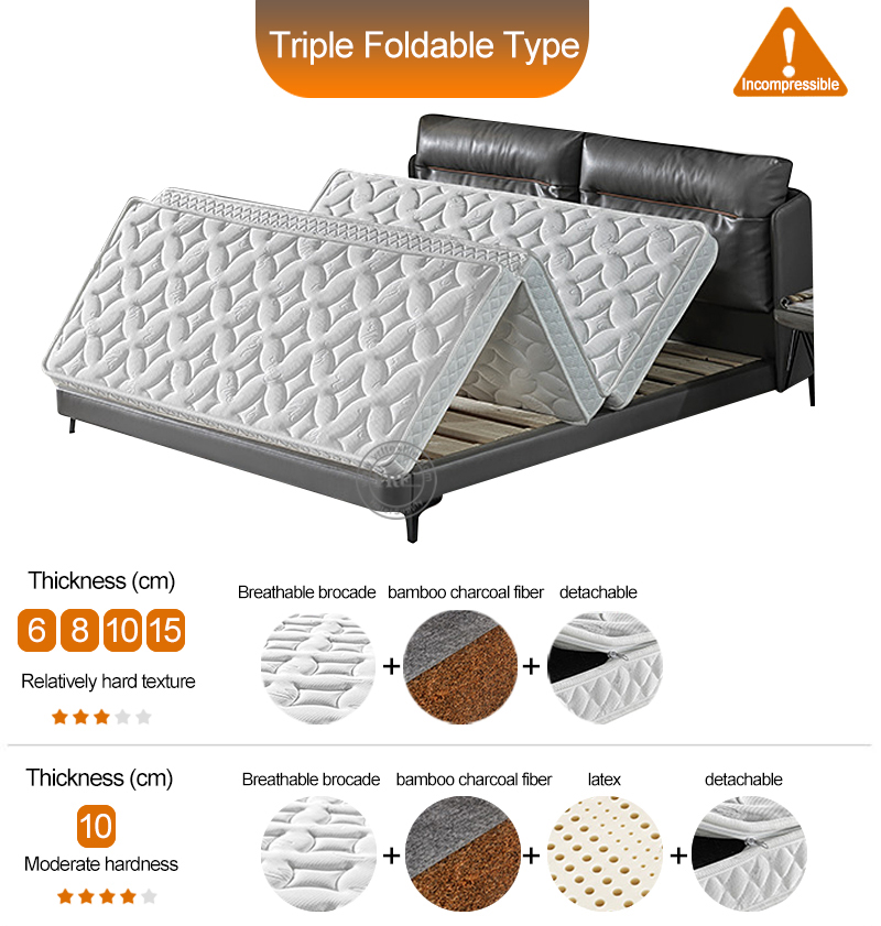 Foldable Mattress Detachable Double is Inner core from above include fabric,sponge, latex, coconut fiber mat, sponge and fabric.All size can be customised