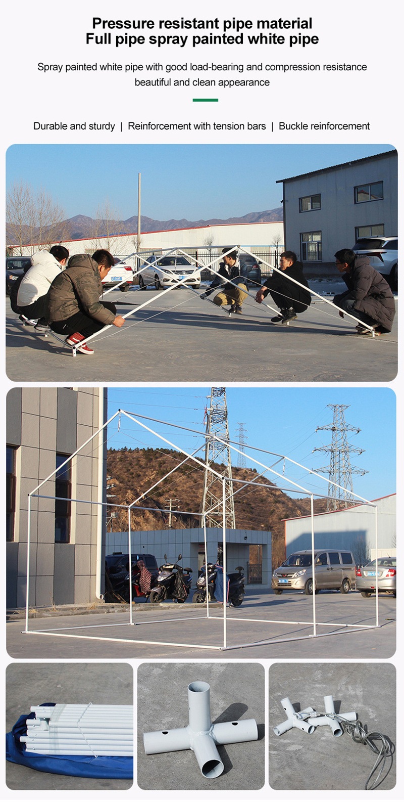 Outstanding flame retardant performance:30-second flameproof, effectively resisting fire threats. Provide a safe shelter for personnel and supplies and Grayuce fire losses.