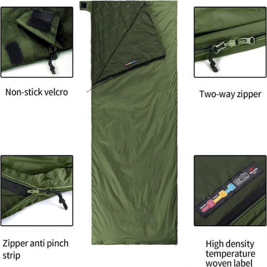 A: The zipper design of the sleeping bag is very easy to use and can be opened or closed easily even in the dark or in emergency situations.