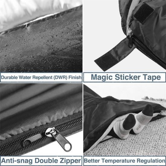 Outer layer uses 35D soft touch nylon fabric, specially treated to feel similar to home bedding, reducing unfamiliarity and discomfort of disaster area environments. Inner layer is skin-friendly micro-fleece fabric, moisture absorption and breathability both 35% better than ordinary sleeping bag fabrics, providing comfortable skin contact experience. Filling material uses special zoned design, head, shoulder, and foot areas with filling density reaching 95g/m², providing better support; middle part slightly thinner to increase softness, overall thermal performance balanced. Zipper uses silent design, reducing opening and closing noise by 60%, avoiding disturbing rest of surrounding personnel. Bottom treated with anti-slip processing, not easily shifting even on slopes or smooth grounds, improving sleep stability.