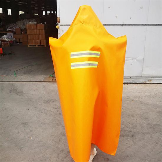 This orange fire protection cape is made of heat-resistant fiberglass with double-sided silicone coating, withstanding temperatures up to 1000°C, with material thickness ≥0.425mm. Adult size 1.6m×1.2m, children's size 1.2m×1.0m. Back reflective strips design increases visibility by 97% at night or in smoke environments. Full-body protection with drawstring closure effectively isolates high temperatures during fire rescue and escape, providing professional protection for petrochemical plants, high-rise fires, and industrial fire escapes, extending escape time by 3-5 minutes.