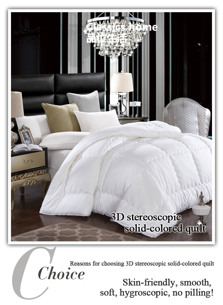 Environmental Twin Luxury Quilts for Sale for Resort. This bedding set king size is made of 90 %White duck down With a thread count of 250, this set makes for a comfortable night's rest. This solid bedding set is an addition to any room's decor. This bold color will liven up your bedroom.