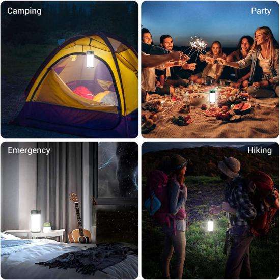 IPX4 waterproof rating and a built-in 1800mAh rechargeable battery, eliminating the need for battery replacement. With a hook design on the top, you can hang it on a tree or inside a tent for better illumination. |