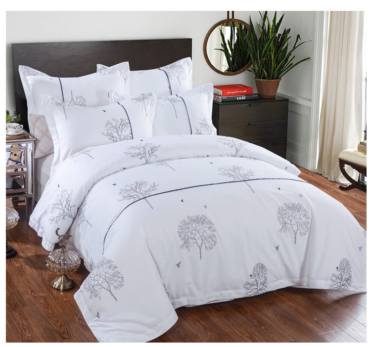White 5 Star Hotel Embroidery Hotel Bedding SheetBring simplicity and naturalness to your bedroom with a stylish home comfortable down quilt cover. Durable Luxury Cotton University Elegant Bedding Gorgeous clip plait design is a kind of grace and fashionable way to enhance the beauty of any bedroom on pure white, luxuriant and low-key have connotation.