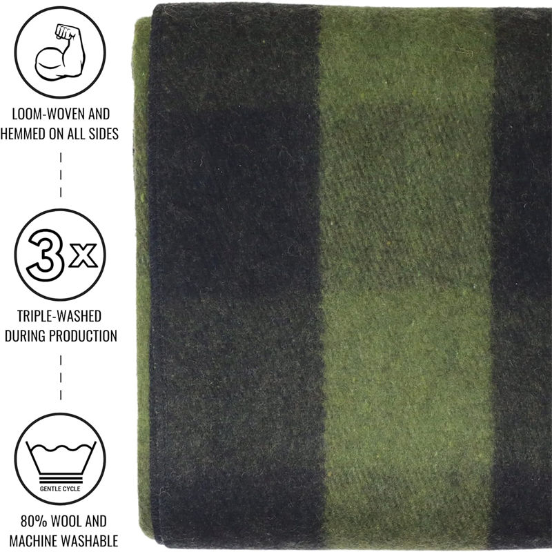 Thick and fireproof wool blanket Features: The Thick and fireproof wool blanket is 4.5 pounds thick, which is equivalent to a 550 GSM density, which means that it is very thick and will provide you with good warmth. Also, wool is a time-tested natural fabric that keeps you warm even when wet. The remainder of the blanket consists of 20% allergen-compatible synthetic fibers, which ensures that it is durable and washable. Best of all, wool is a naturally fire-resistant material. Therefore, it is an ideal choice for emergency disaster relief, military, donation aid, project works or reserve supplies.
