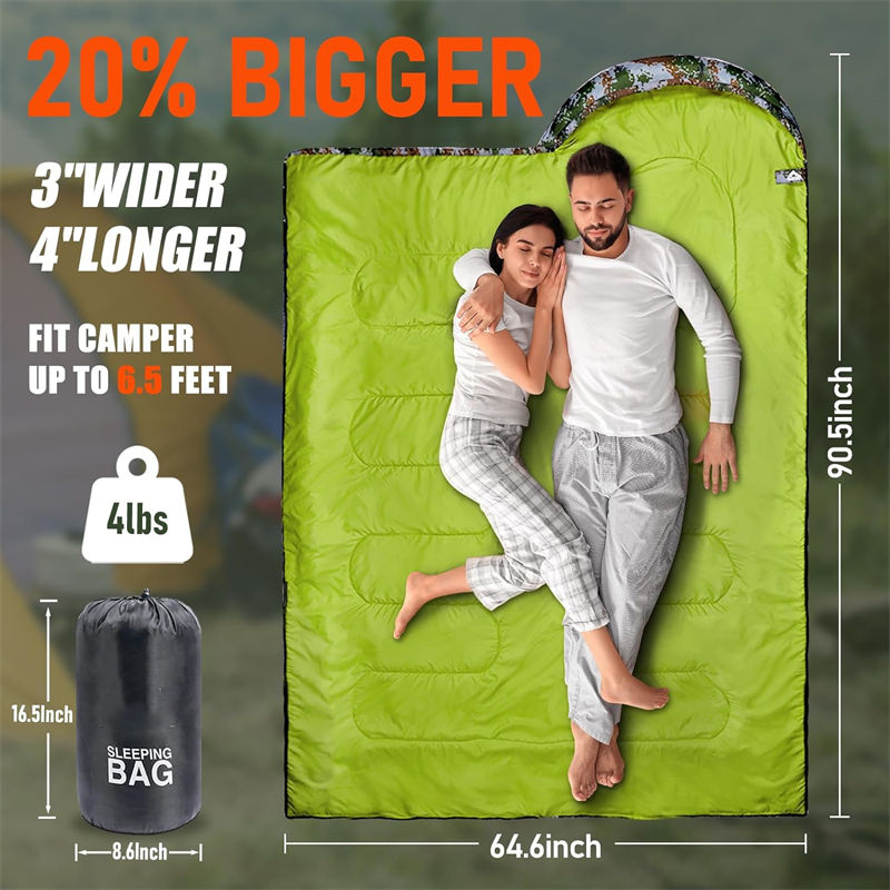 The self-inflating pad can be used as a sleeping bag pad or bed for your protection. The snap design allows both sides of the foam pad to be attached. Thanks to the wrap-around zipper, Outdoors refugees sleeping bags can be divided into two queen-sized blankets. This design allows our sleeping system to excel outdoors or indoors, bringing warmth and comfort to your nights.