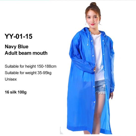 Front-Opening Rescue Raincoat for Disaster ResponseThis EVA Rescue Raincoat is specially designed for disaster relief workers and emergency response teams. Made of eco-friendly non-toxic EVA material with 99% waterproof performance, it effectively ensures the safety of rescue personnel in adverse environments such as torrential rains, floods, and landslides. The front-opening button design allows for easy putting on and taking off, while the loose 140cm chest circumference accommodates various rescue equipment underneath, and the 123cm coat length provides all-around protection. Already equipped by over 500 flood control teams, it has demonstrated excellent protective performance in nearly 30 major disaster relief operations.